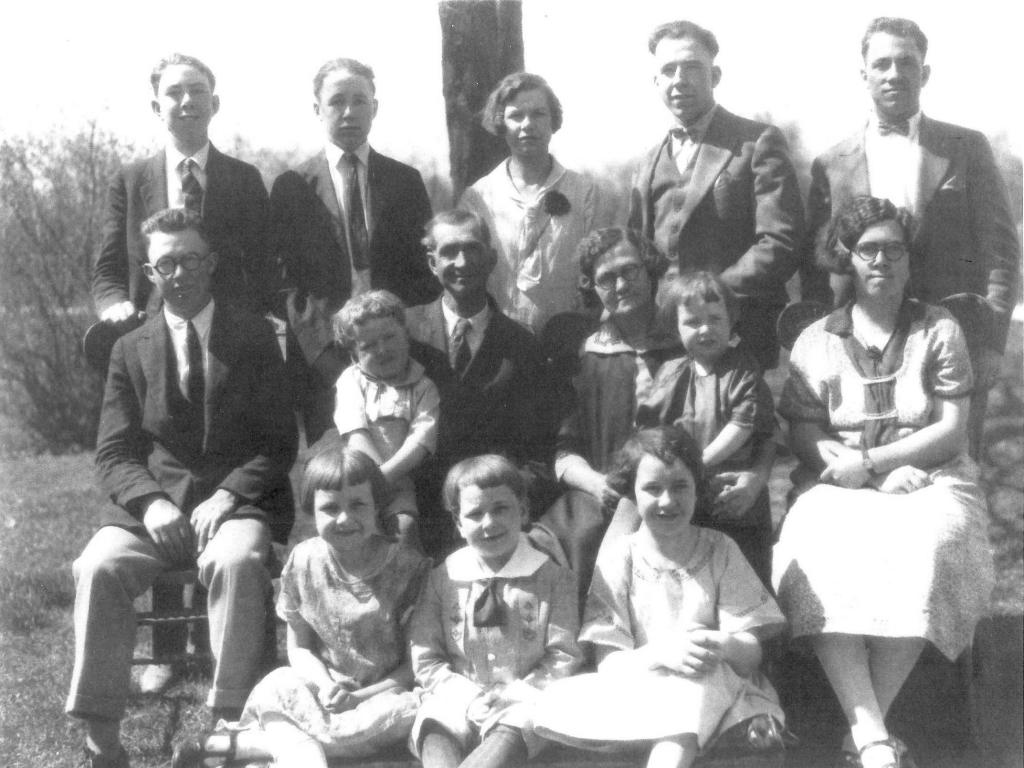 LeFever family, left to right, starting at back row, Homer, Elmer, Ina, Lloyd, Howard, middle row, Clifford, Donald, William, Mary, Vora, Ada, front row, Marian, Milton and Beulah. Although a number of family members would occupy the house as they got older, the farm was eventually sold to developers and now subdivisions of homes have taken its place along 29 Mile Road. From ‘Farming in Northern Macomb County’ by Arcadia Publishing.