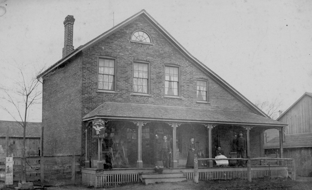 Robert Dopp put the word out that men were needed for the building of the building, and as per the usual community, there would be many local men that would want to help with this project. During construction on one particular day, a photograph was taken of the men while they were resting, and the group very willing obliged the photographer with their posing. Along with this happy group, someone added a sign, ‘Local Option Enforced’, which drew my attention. After researching the saying, I found it very interesting.