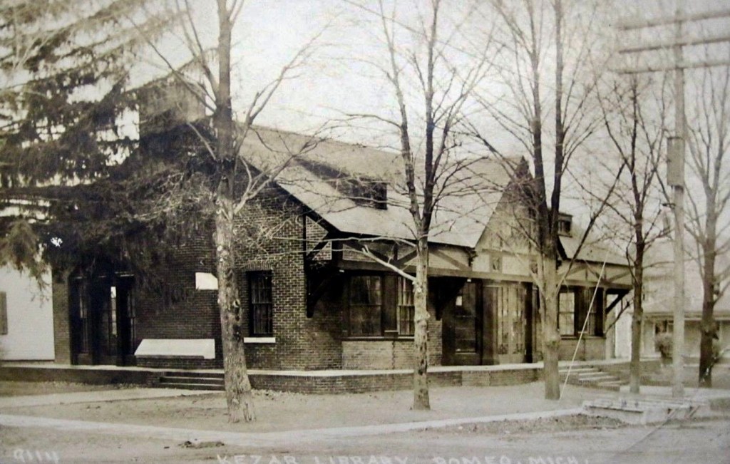 Samuel and Nancy Kezar, from Turner, New York lived in a Queen Anne style home on Church Street in Romeo, that they built in 1894. Samuel passed away in Romeo in 1898. The Kezar home at 180 Church Street is where the Romeo Public Library, Romeo Book Club and the Romeo Monday Club would organize in 1900 and run through 1908. Nancy and her daughter Mary eventually moved to San Francisco, where Mrs. Kezar would come into an inheritance and remember their time in Romeo. They came up with a plan through their agent to give a library building to the village of Romeo.