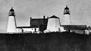In 1808 two octagonal wooden towers, forty-feet tall and seventy-feet apart were erected, along with a one-story, three room keepers house. These 40 foot brick twin lights, pictured below, were built and established in 1841 to replaced the two wood towers used from 1808. The lantern rooms on the towers are referred to as ‘bird-cage style lanterns’ because of their appearance.