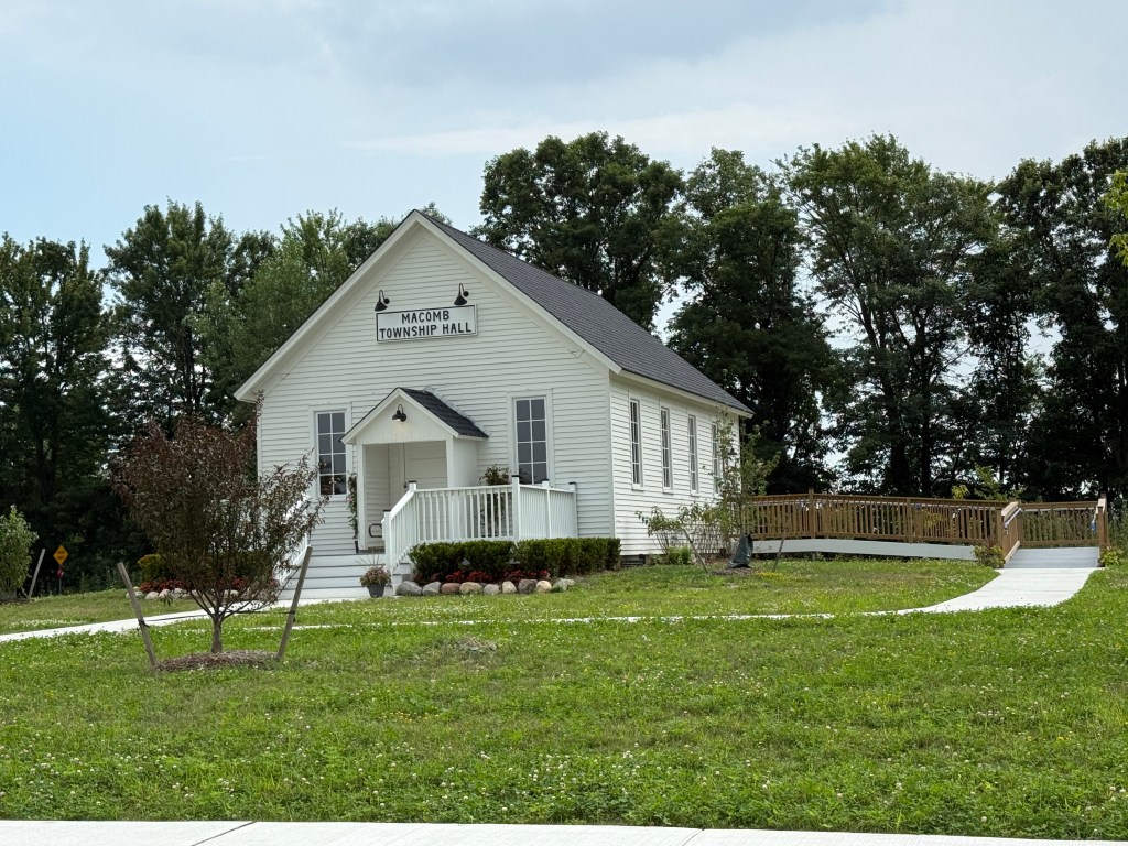 While the township would eventually purchase the Wade Nursery property, the ‘old township hall’ was again part of the Macomb Township, on property that was slated for a park area. Renovations took place, with the vision of a learning center for the hall that resembled so much of a late century school house. The township was kind enough to allow the use of the newly renovated ‘township hall’ to host the book launch of the book that was bringing the history in vintage images to life in the middle of covid, safely, with masks, no less! Before long this property was again sold, and the hall was once again moved, this time to it’s permanent home in the expanded township complex on Broughton Road off of 25 Mile Road, along with the recreation center, library and newest township hall.