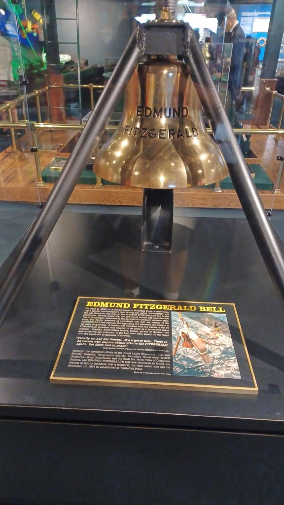 “In a musty old hall in Detroit they prayed in the Maritime Sailors Cathedral. The church bell chimed till it rang twenty-nine times for each man on the Edmund Fitzgerald. The legend lives on from the Chippewa on down on the big lake they call Gitchee Gumee, Superior, they said, never gives up her dead, when the gales of November comes early.”