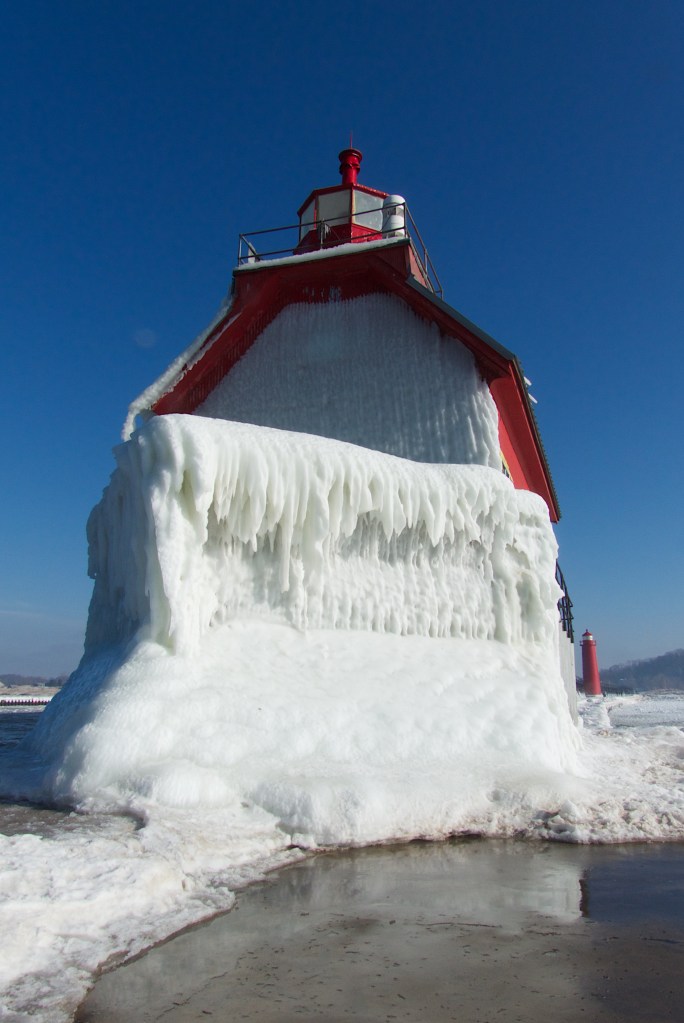 Frigid temperatures, strong winds, snow and freezing spray have created dramatic ice formations along Lake Michigan’s shoreline, with ice coverage on the lake reaching more than 35% earlier than normal this week. The severe conditions have coated iconic lighthouses in Grand Haven, South Haven and St. Joseph with thick layers of ice, with very impressive designs. Strong winds, crashing waves and long cold snaps can sculpt layers and ribbons of ice and icicles on the towers and catwalks, creating dramatic forms that often appear on the national news.