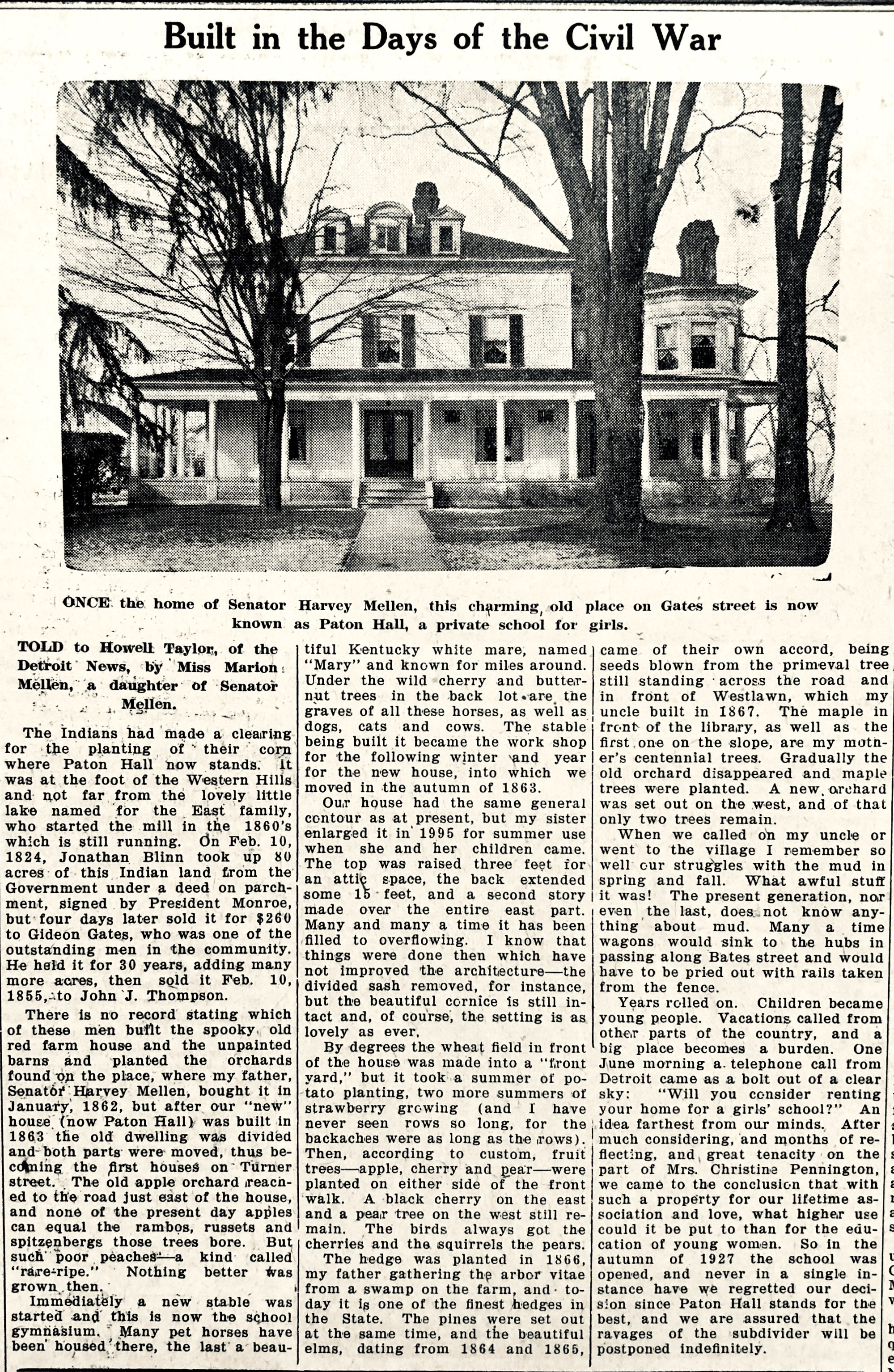 Harvey wed Elizabeth Bowerman from Romeo in 1849. When the Mellons purchased the property on Gates Street in 1863 a home was built in the Italianate style. They had 3 daughters and one son passed away early in life.