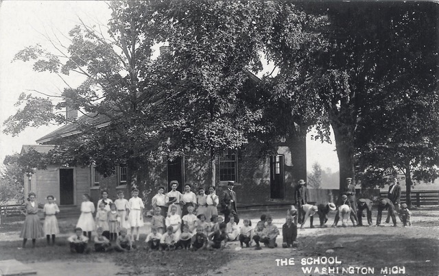 Mount Vernon would be a thriving village located in the southwest portion of Washington Township at Mt Vernon and 28 Mile Road. It would gather a number of businesses, such as a general store, a cooper shop, a gas station, a rag-rug weaving shop, buggy shop, several saw mills and a greenhouse, two churches and a blacksmith shop, a post office which would be considered one of the oldest post offices in the county. This community would be instantly associated with William Austin Burt, for making his home in this area. On January 14, 1833, he would receive an appointment to be the first postmaster of Mt Vernon, which had then just been established, with April of the same year, he would be appointed associate judge of this judicial area. William would also become one of the founding members of the Mt Vernon Baptist Church. The Crissman, Clifton, Sikes and Thorington schools were all wood frame, one-room schools houses, with Washington School being the first brick school in the Village of Washington its self. These schools would be built on land that was usually donated by the owner’s of the land or parents of the students.